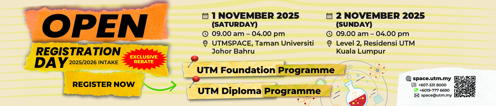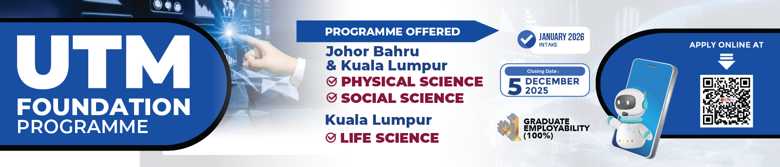 All online applications for UTM Diploma and Foundation programmes are subject to a non-refundable RM50 processing fee.