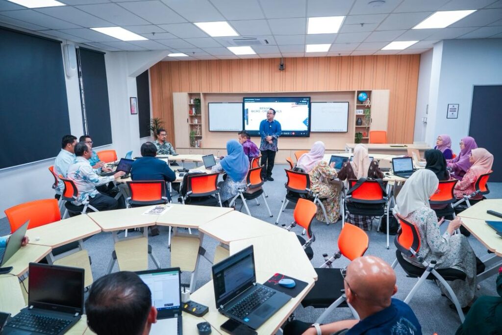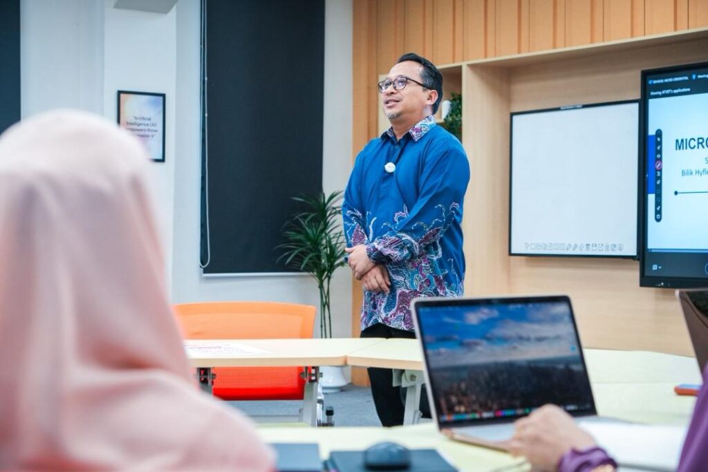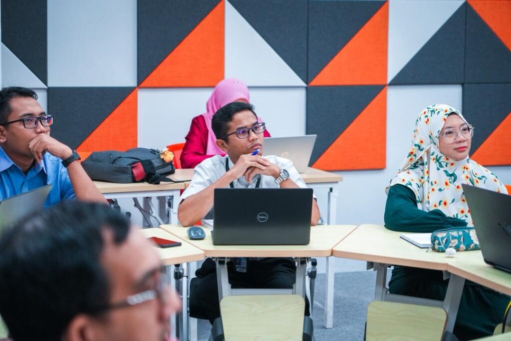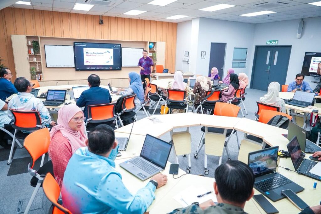 Sesi perkongsian dan pembentangan telah disampaikan oleh Prof. Madya Ts. Dr. Azizul Azri Mustaffa dan En. Mohd Harith Fadzillah Rasid dari UTM CDex, yang berkongsi kepakaran serta pengalaman berkaitan pembangunan modul micro-credentials, strategi pelaksanaan serta amalan terbaik dalam ekosistem pendidikan digital.